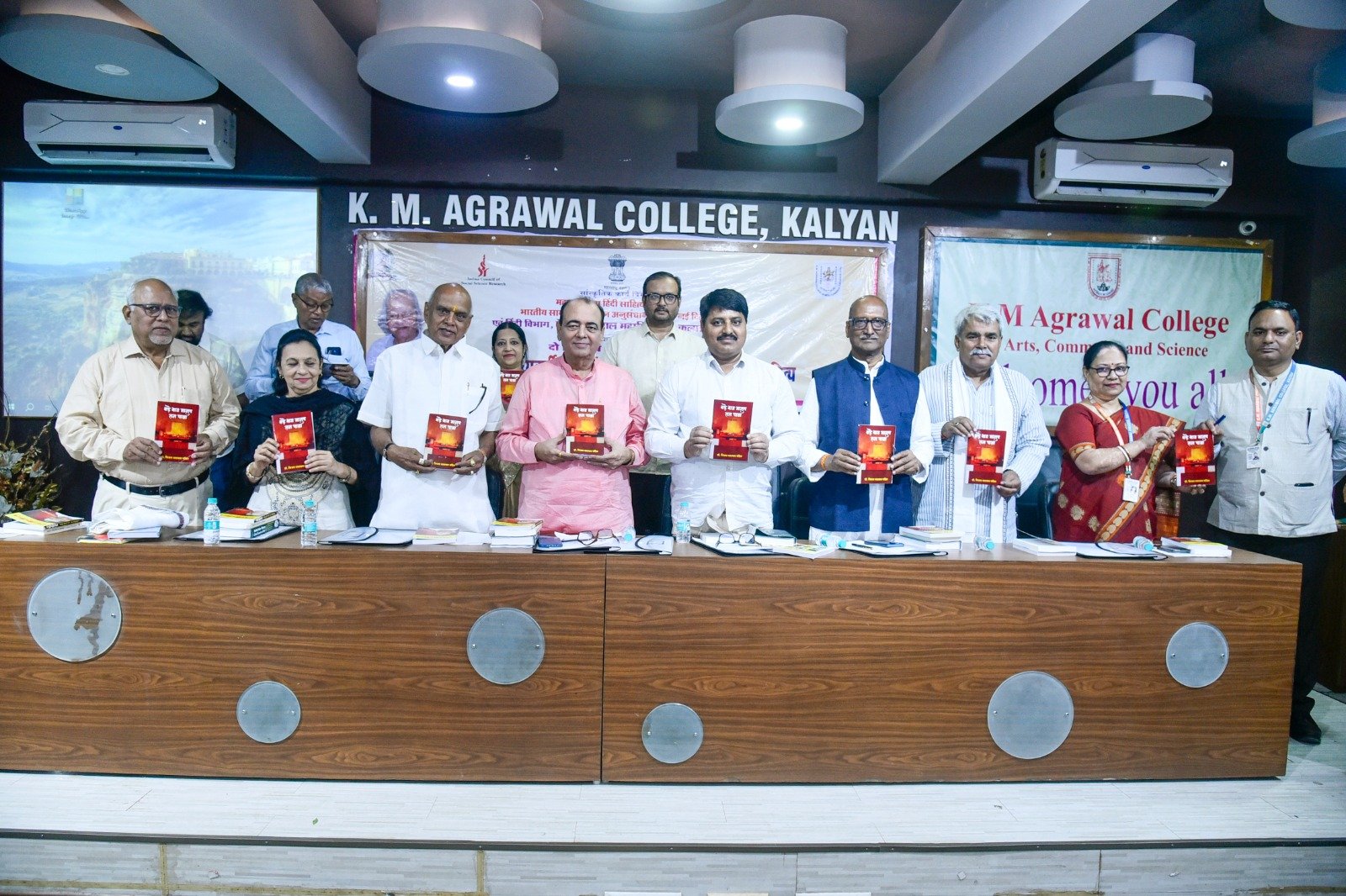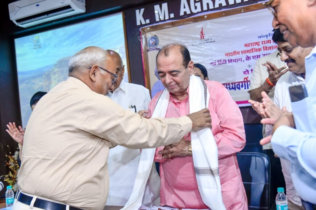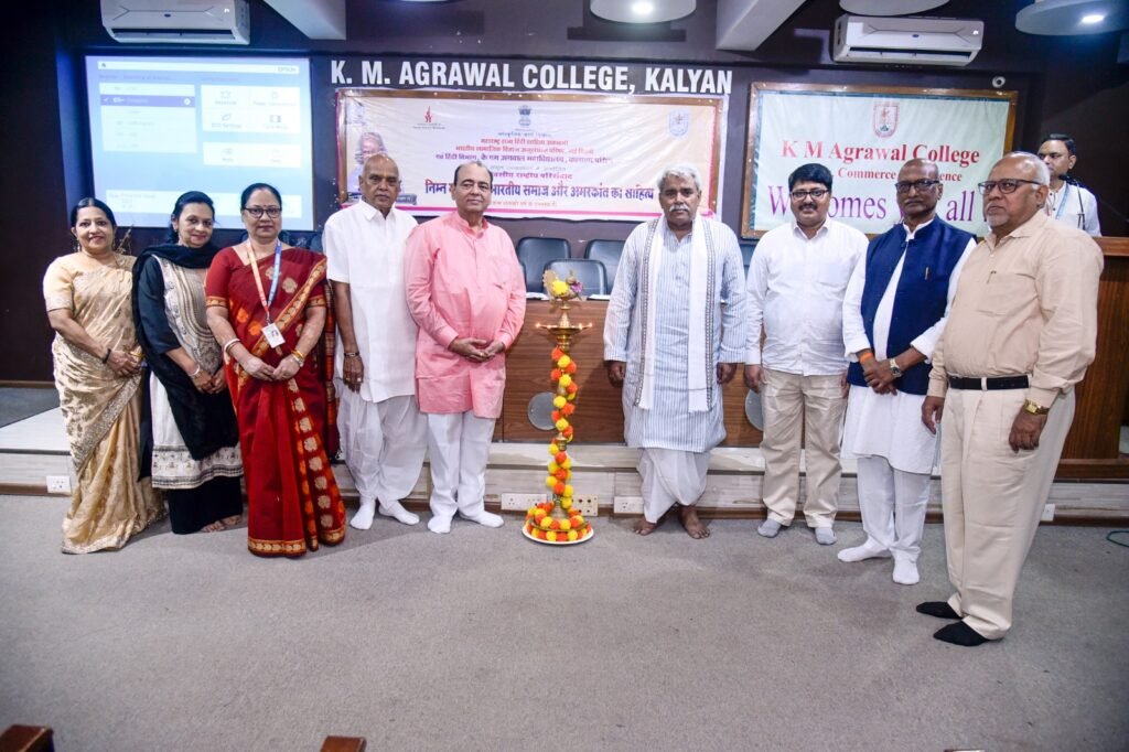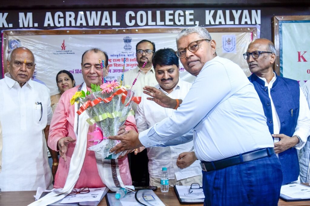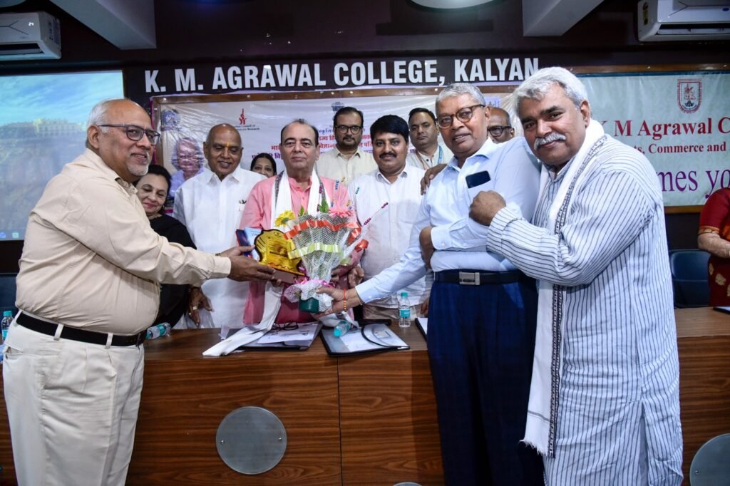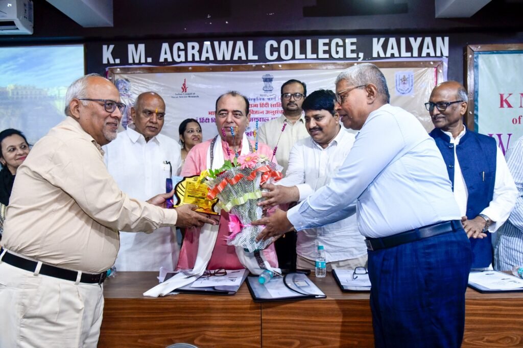 कल्याण (पश्चिम) स्थित के. एम. अग्रवाल महाविद्यालय के हिन्दी विभाग के तत्वावधान में 16–17 जनवरी 2026 को आयोजित दो दिवसीय राष्ट्रीय संगोष्ठी अत्यंत गरिमामय वातावरण में सफलतापूर्वक सम्पन्न हुई। डॉ. विजय नारायण पंडित के कहानी संग्रह “बड़े भाग मानुष तन पावा” का लोकार्पण सम्पन्न, इस राष्ट्रीय संगोष्ठी में देश के विभिन्न विश्वविद्यालयों एवं महाविद्यालयों से पधारे प्रतिष्ठित शिक्षाविदों, साहित्यकारों, शोधार्थियों तथा विद्यार्थियों ने सक्रिय और उत्साहपूर्ण सहभागिता की। संगोष्ठी का उद्घाटन सत्र महाविद्यालय के अध्यक्ष एवं प्रख्यात साहित्यकार डॉ. विजय नारायण पंडित के मार्गदर्शन में सम्पन्न हुआ। उद्घाटन सत्र की अध्यक्षता महाराष्ट्र राज्य हिन्दी साहित्य अकादमी के पूर्व अध्यक्ष प्रो.शीतला प्रसाद दुबे ने की। बीज वक्तव्य प्रो.मनोज सिंह (प्रोफेसर, हिन्दी विभाग, बनारस हिन्दू विश्वविद्यालय) द्वारा प्रस्तुत किया गया, जिसमें हिन्दी साहित्य के समकालीन विमर्श, सामाजिक सरोकारों और वैचारिक प्रवृत्तियों पर गहन एवं विचारोत्तेजक दृष्टि डाली गई। मुख्य अतिथि के रूप में श्रीमती रेनू पृथियानी (अंचल निदेशक, भारतीय सांस्कृतिक संबंध परिषद, मुंबई) की गरिमामयी उपस्थिति रही।