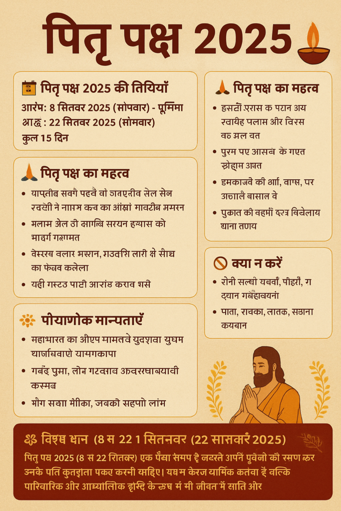 २०२५ में पितृपक्ष के प्रमुख श्राद्ध तिथियों की सूची दी जा रही है