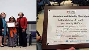नई दिल्ली, 8 मार्च (हि.स.)। खसरा और रूबेला रोग की रोकथाम में अनुकरणीय प्रयासों के लिए भारत को ‘खसरा और रूबेला चैंपियन’ पुरस्कार दिया गया है। भारत को 6 मार्च को अमेरिका स्थित रेड क्रॉस मुख्यालय में दी मीजल्स एंड रूबेला पार्टनरशिप द्वारा आयोजित समारोह में प्रतिष्ठित मीजल्स एंड रूबेला चैंपियन अवार्ड से सम्मानित किया गया।भारत को मिला ‘खसरा और रूबेला चैंपियन’ पुरस्कार यह अवार्ड केन्द्रीय स्वास्थ्य एवं परिवार मंत्रालय की तरफ से अमेरिका में भारतीय राजदूत श्रीप्रिया रंगनाथन ने प्राप्त किया। उल्लेखनीय है कि खसरे और रूबेला की रोकथाम के लिए वैश्विक स्तर पर एक बहु-एजेंसी योजना समिति का गठन किया गया है, जिसमें अमेरिकन रेड क्रॉस, बीएमजीएफ, जीएवीआई, यूएस सीडीसी, यूएनएफ, यूनिसेफ और डब्ल्यूएचओ शामिल हैं, जो वैश्विक खसरे से होने वाली मौतों को कम करने और रूबेला बीमारी को रोकने के लिए समर्पित हैं। इन प्रयासों के परिणामस्वरूप 50 जिलों में लगातार खसरे का कोई मामला सामने नहीं आया है जबकि 226 जिलों में पिछले 12 महीनों में रूबेला का कोई मामला सामने नहीं आया है। शुक्रवार को स्वास्थ्य मंत्रालय ने बताया कि यह सम्मान सार्वजनिक स्वास्थ्य के प्रति भारत की अटूट प्रतिबद्धता और बच्चों में इन संक्रामक रोगों के प्रसार को रोकने में भारत की प्रतिबद्धता को दर्शाता है। कई चुनौतियों का सामना करने के बावजूद, भारत ने व्यापक हस्तक्षेपों की एक श्रृंखला के माध्यम से खसरा और रूबेला के मामलों को कम करने और प्रकोप को रोकने में उल्लेखनीय प्रगति का प्रदर्शन किया है।