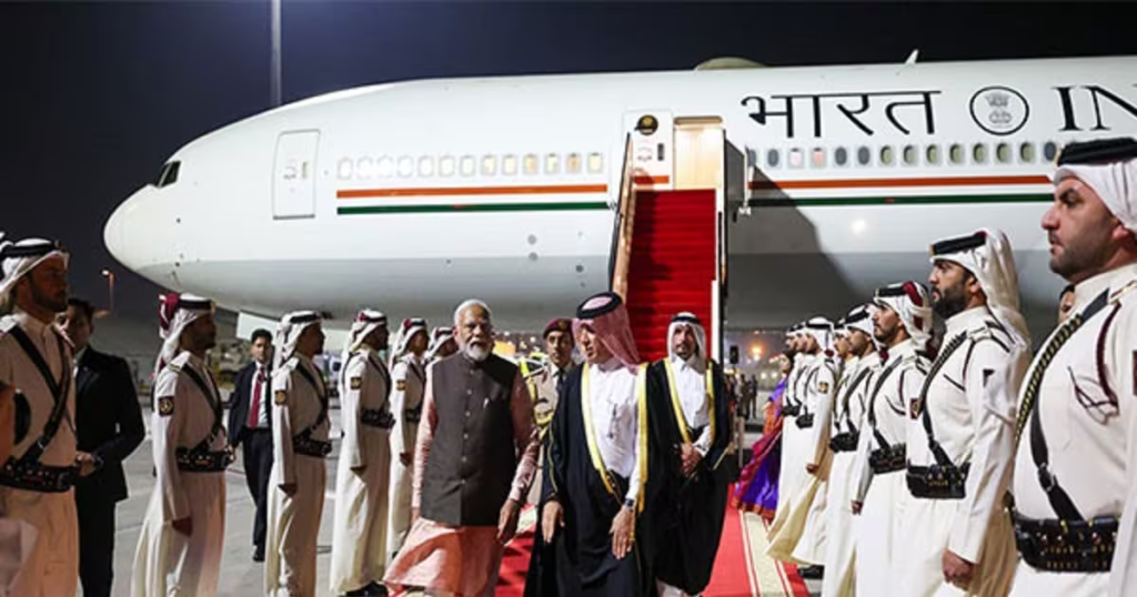 यूएई की अपनी यात्रा पूरी करने के बाद प्रधानमंत्री नरेंद्र मोदी कतर पहुंचे हैं। प्रधानमंत्री मोदी बुधवार रात को अपनी दो दिन की आधिकारिक यात्रा पर कतर की राजधानी दोहा पहुंचे। 8 भारतीयों की रिहाई के बाद दोहा पहुंचे प्रधानमंत्री मोदी , दोहा पहुंचने के बाद उन्होंने कतर के प्रधानमंत्री के शेख मोहम्मद बिन अब्दुलरहमान बिन जसीम अल थानी के साथ बैठक की। बैठक के बाद प्रधानमंत्री नरेंद्र मोदी ने ट्वीट करते हुए कहा कि कतर के पीएम के साथ उनकी मुलाकात शानदार रही। दोनों नेताओं के बीच भारत-कतर मित्रता को बढ़ावा देने के तरीकों पर चर्चा हुई।